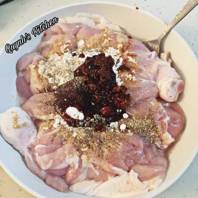Ướp Gà: 2 cái đùi gà lóc xương (ở đây ước lượng gà mình dùng tầm 450g)