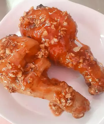 – Bơ đun cho chảy ra, sau khi đùi gà chín thì đổ bơ lên miếng gà chiên xù cho quện đều bơ, dậy mùi thơm béo ngậy.