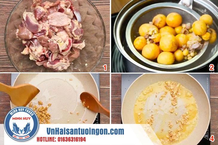 Bước 3: Phi vàng 1 củ tỏi băm để rắc lên lòng gà.