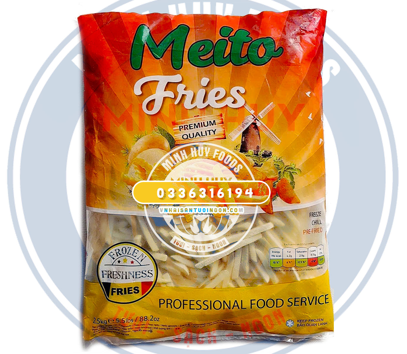 3818Khoai tây Meito Frites là một dòng khoai tây đông lạnh đến từ Meito, một công ty Nhật Bản chuyên sản xuất thực phẩm đông lạnh chất lượng cao. Thương hiệu Meito Frites đặc biệt nổi bật với các sản phẩm khoai tây chế biến sẵn, dễ dàng sử dụng và phù hợp cho các quán ăn, nhà hàng, và gia đình.