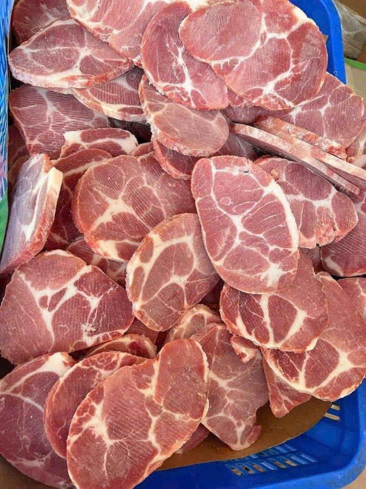 - Vị Trí: Nạc dăm nằm ở phần cổ heo, gần vai. Đây là phần thịt khá đặc biệt vì chứa các sợi mỡ xen kẽ với nạc.